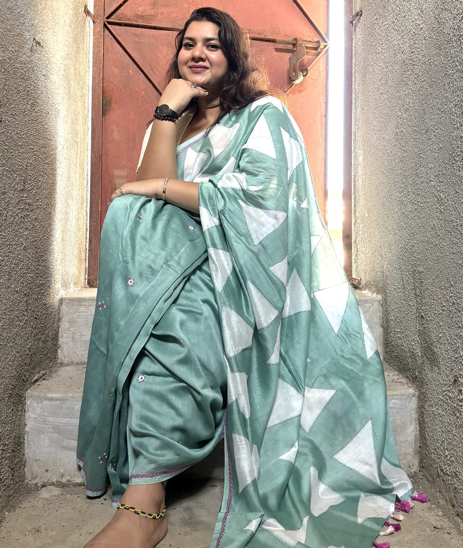 Pure cotton sarees with simple weaves are best choice for minimal . These sarees are soothing and comfortable.