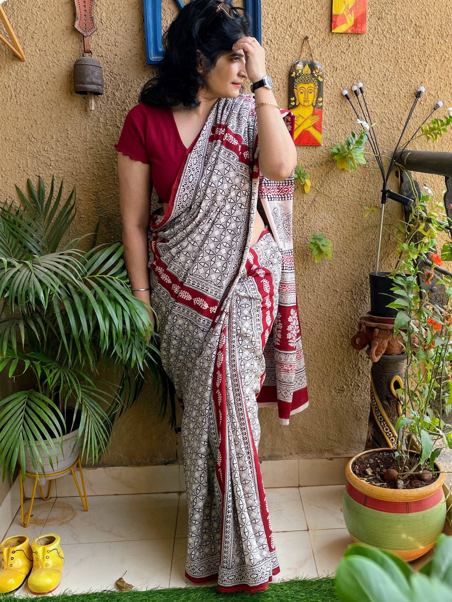 We took our love for The famous Rabindra Sangeet a little ahead and married them with Rajasthan by hand block printing these in Dabu technique.