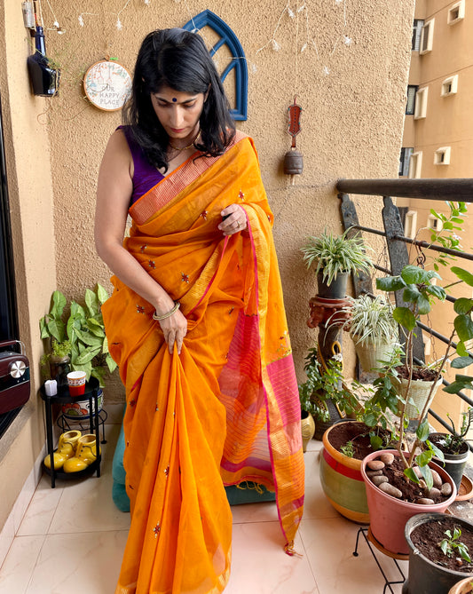 Pre book -Soof Embroidery Kala cotton yellow saree-Pre book