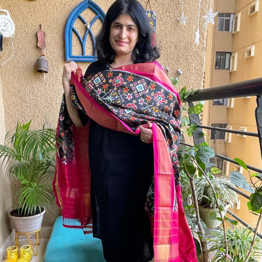Sold outBlack Pochampally Ikat cotton saree
