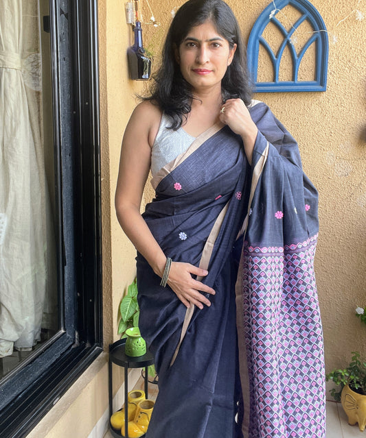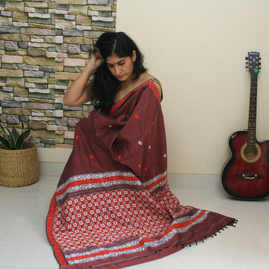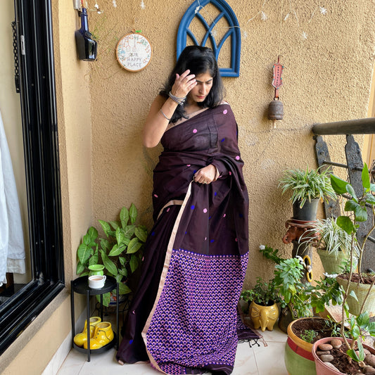Chocolate Brown assam Cotton Saree