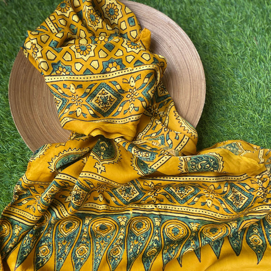 Bhujodi Saree in Yellow Kala Cotton