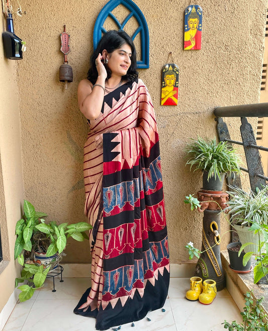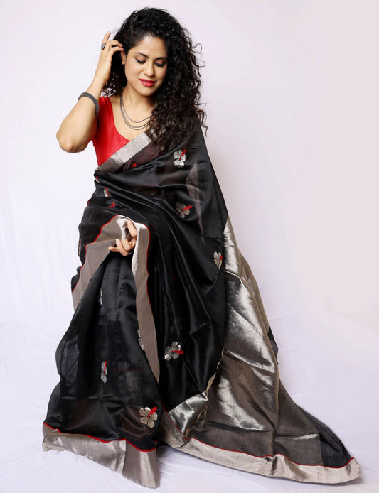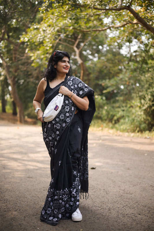 You will look slimmer in a black saree and it creates a flattering silhouette on most body types. This is one of the main reasons women choose black sarees when they want a more understated look.