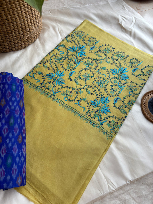 Yellow Silk Sozni kashmiri saree