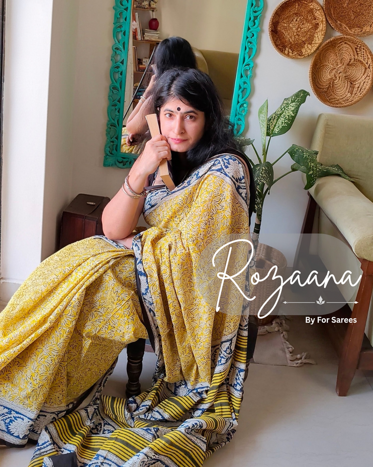 Yellow Cotton Bagru Block print | Handcrafted Sarees