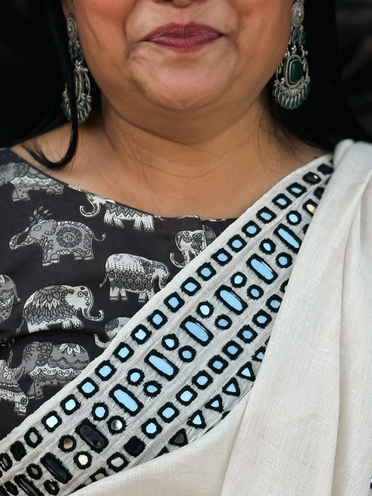 Blouse : Includes blouse in contrast