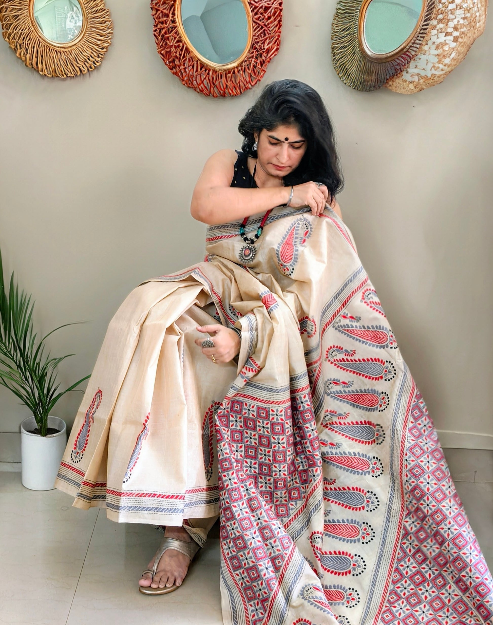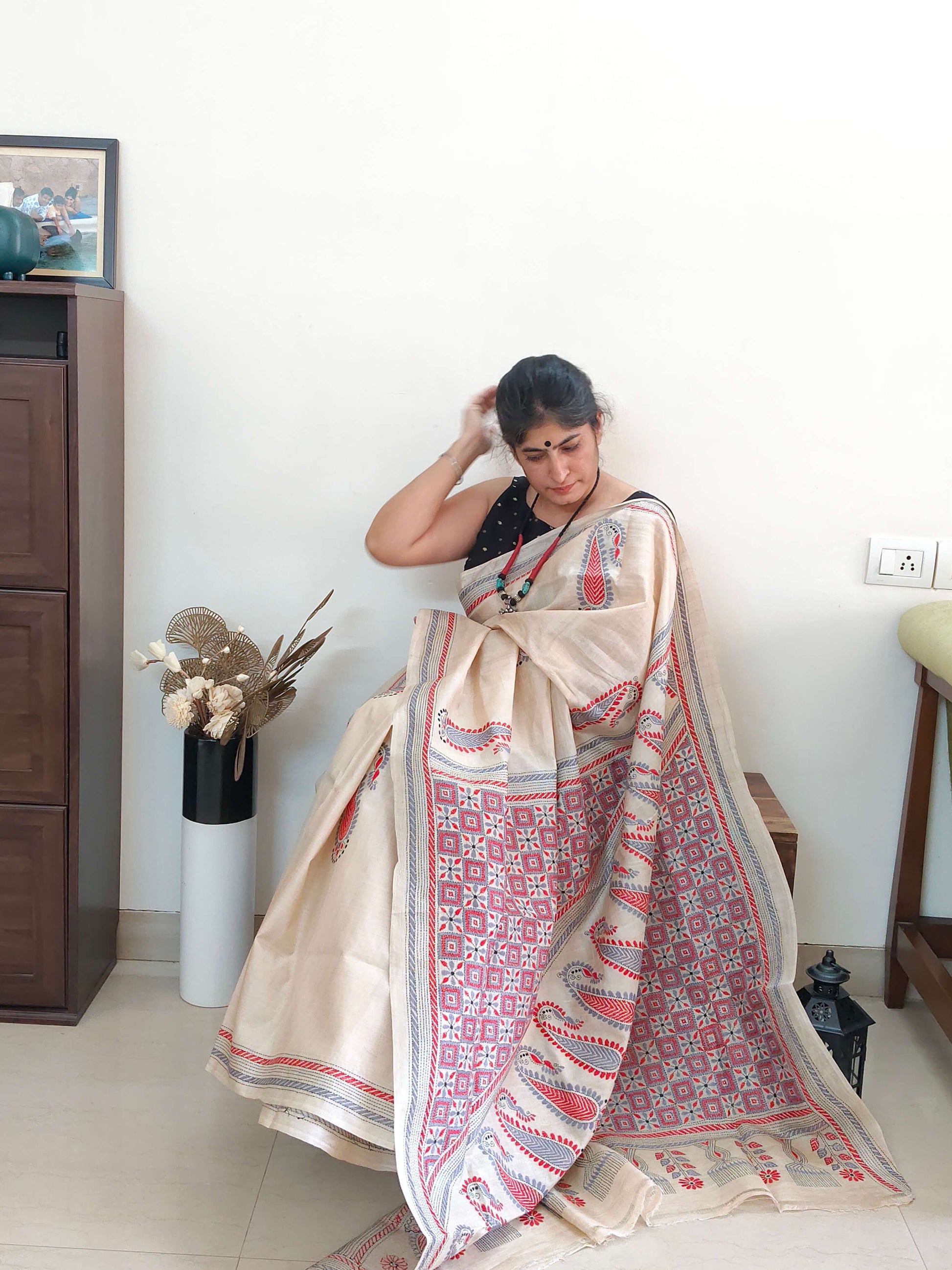 Handloom saree with kantha stitch embroidery