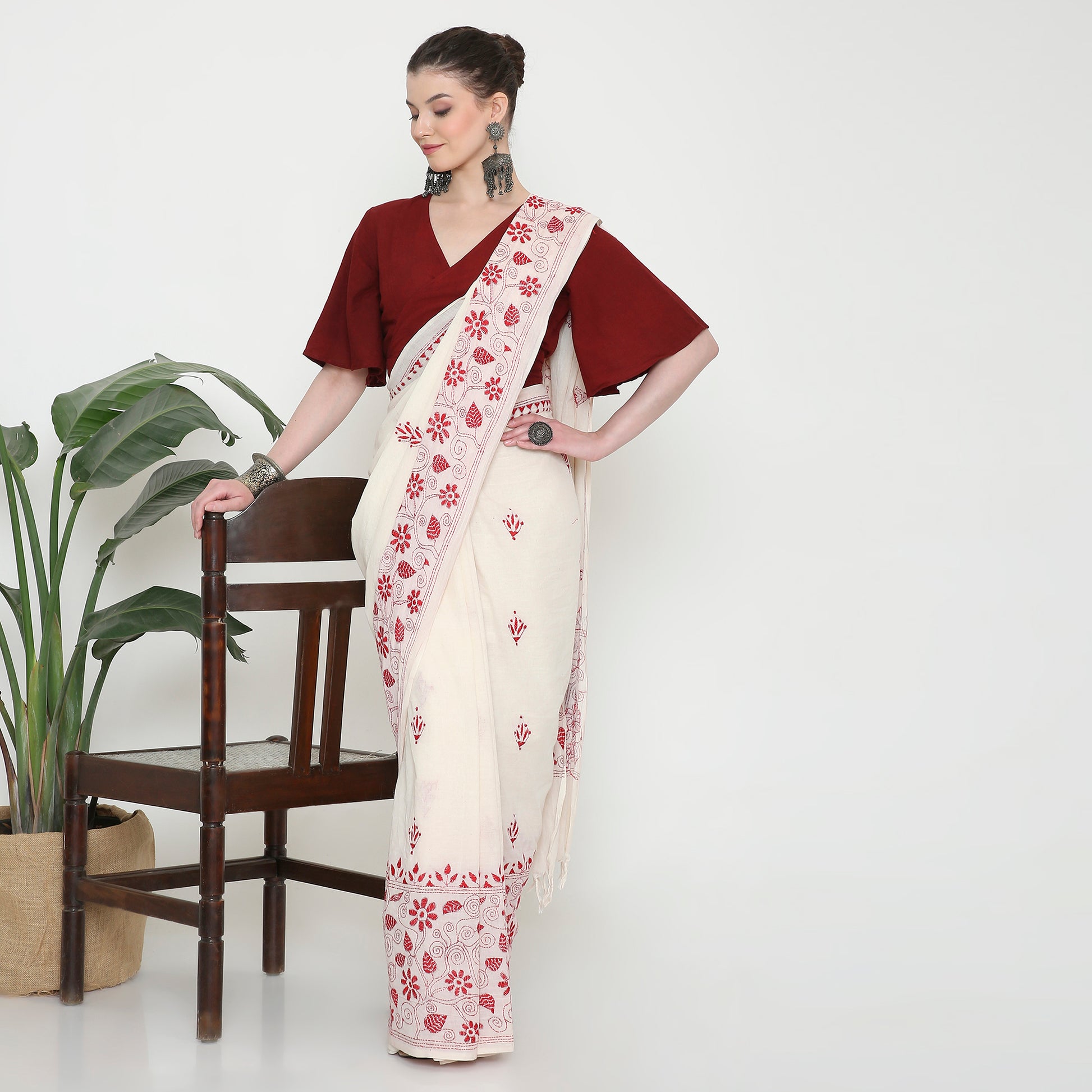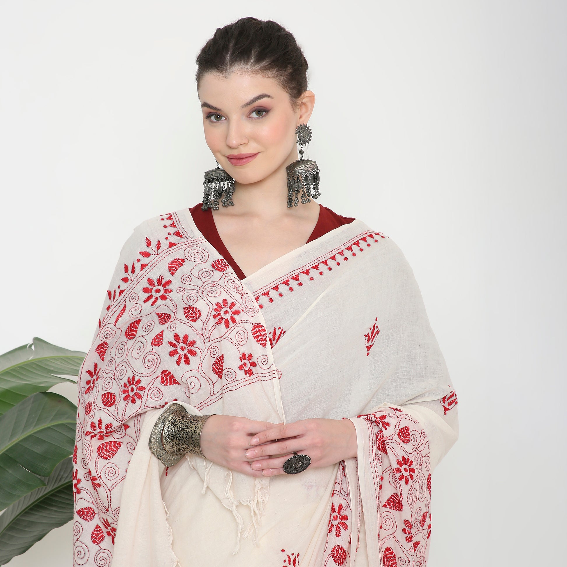 Handloom saree with kantha stitch