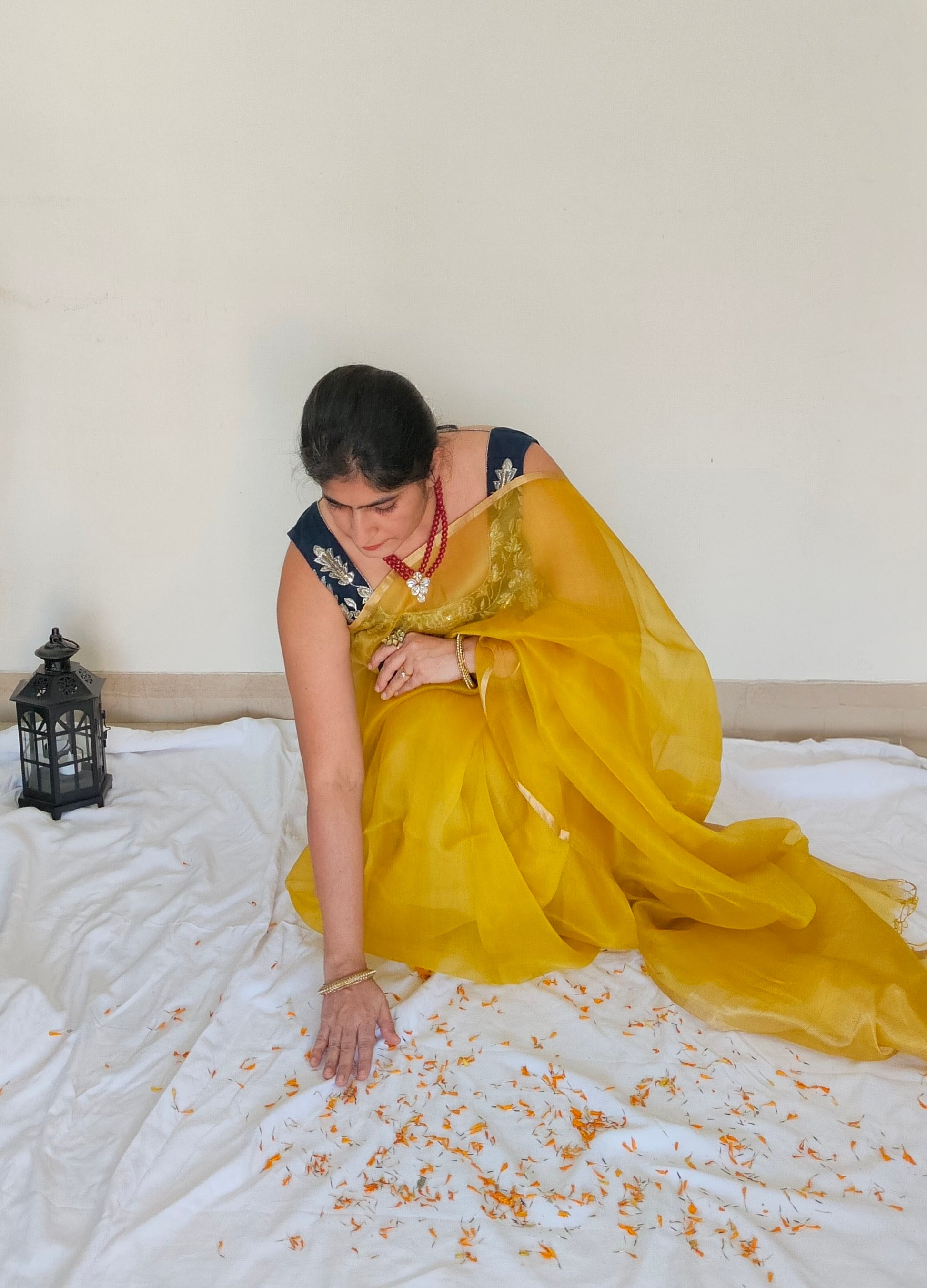 The Saree is handwoven in looms of Mubarakpur, a village close to Azamgarh